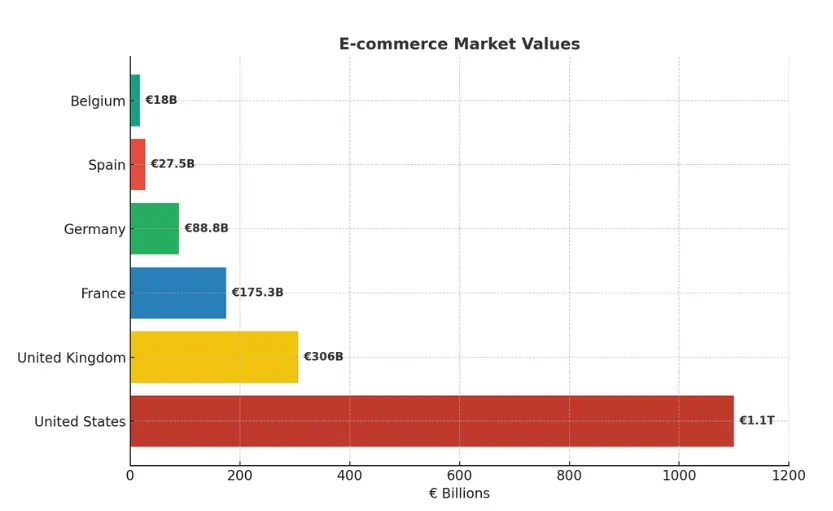 The Netherlands has emerged as one of Europe's most strategic e-commerce export hubs, offering Dutch retailers unprecedented access to six high-value international markets worth over €1.7 trillion combined. With advanced logistics infrastructure, multilingual capabilities, and proven cross-border expertise, Dutch e-commerce businesses are uniquely positioned to capitalize on markets ranging from the neighboring €18 billion Belgian opportunity to the massive €1.1 trillion US market. Understanding the distinct characteristics and consumer behaviors across these markets becomes crucial for successful international expansion.